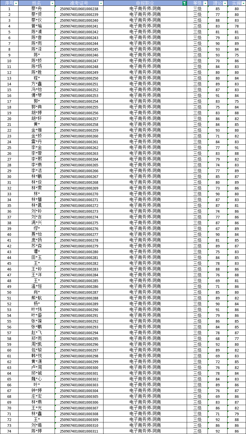 根据福建省职业技能鉴定指导中心关于印发《福建省职业技能等级认定考务实施办法(试行)》的通知有关要求,现将2025年09月07日电子商务师职业技能等级认定成绩予以公示(详见下图)。公示期自2025年09月08日一2025年09月12日,公示期内,如有异议,请及时与我们联系13023877857(欧老师)