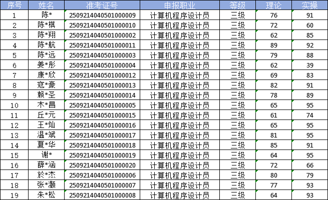 根据福建省职业技能鉴定指导中心关于印发《福建省职业技能等级认定考务实施办法(试行)》的通知有关要求,现将2025年09月21日计算机程序设计员职业技能等级认定成绩予以公示(详见下图)。公示期自2025年09月22日一2025年09月26日,公示期内,如有异议,请及时与我们联系13023877857(欧老师)